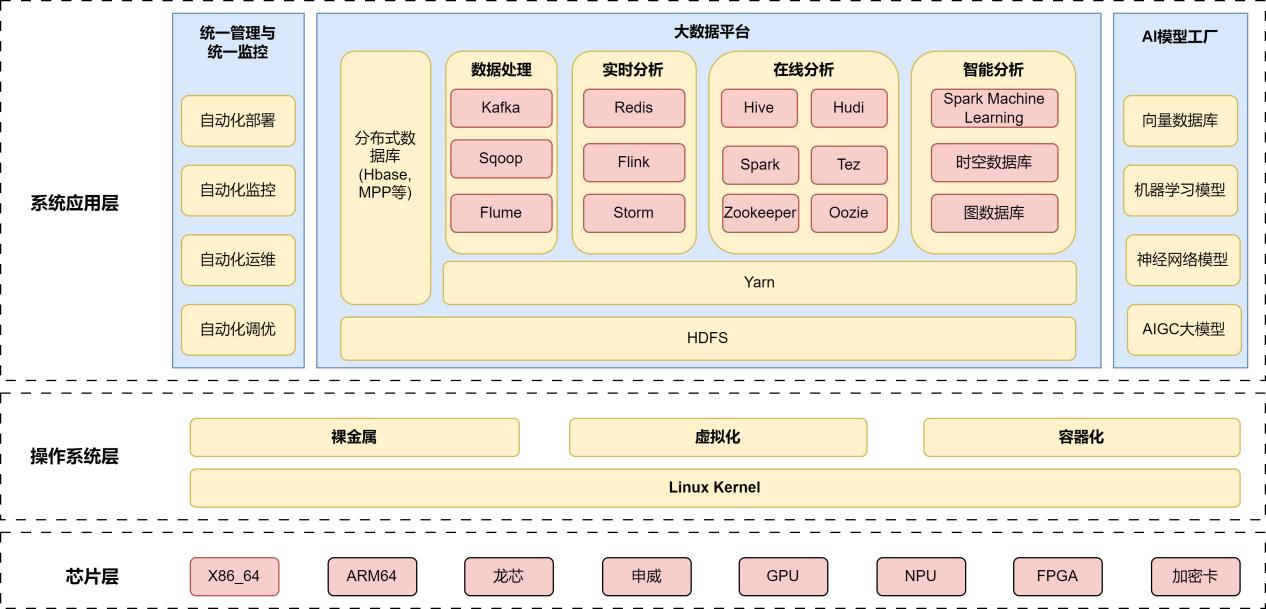 潤和軟件基于HopeOS V22進行大規(guī)模部署,項目總系統(tǒng)部署規(guī)模達到11000+。潤和軟件基于自動化部署平臺,實現(xiàn)OS+業(yè)務(wù)一體化交付,部署效率從數(shù)周提高到小時級。潤和軟件基于大數(shù)據(jù)場景的業(yè)務(wù)特點對HopeOS V22操作系統(tǒng)進行了專項優(yōu)化,使業(yè)務(wù)性能綜合提高10%以上。基于HopeOS V22國產(chǎn)AI生態(tài)支持,賦能行業(yè)大數(shù)據(jù)應(yīng)用,全面替換國外供應(yīng)鏈,實現(xiàn)全棧自主可控。