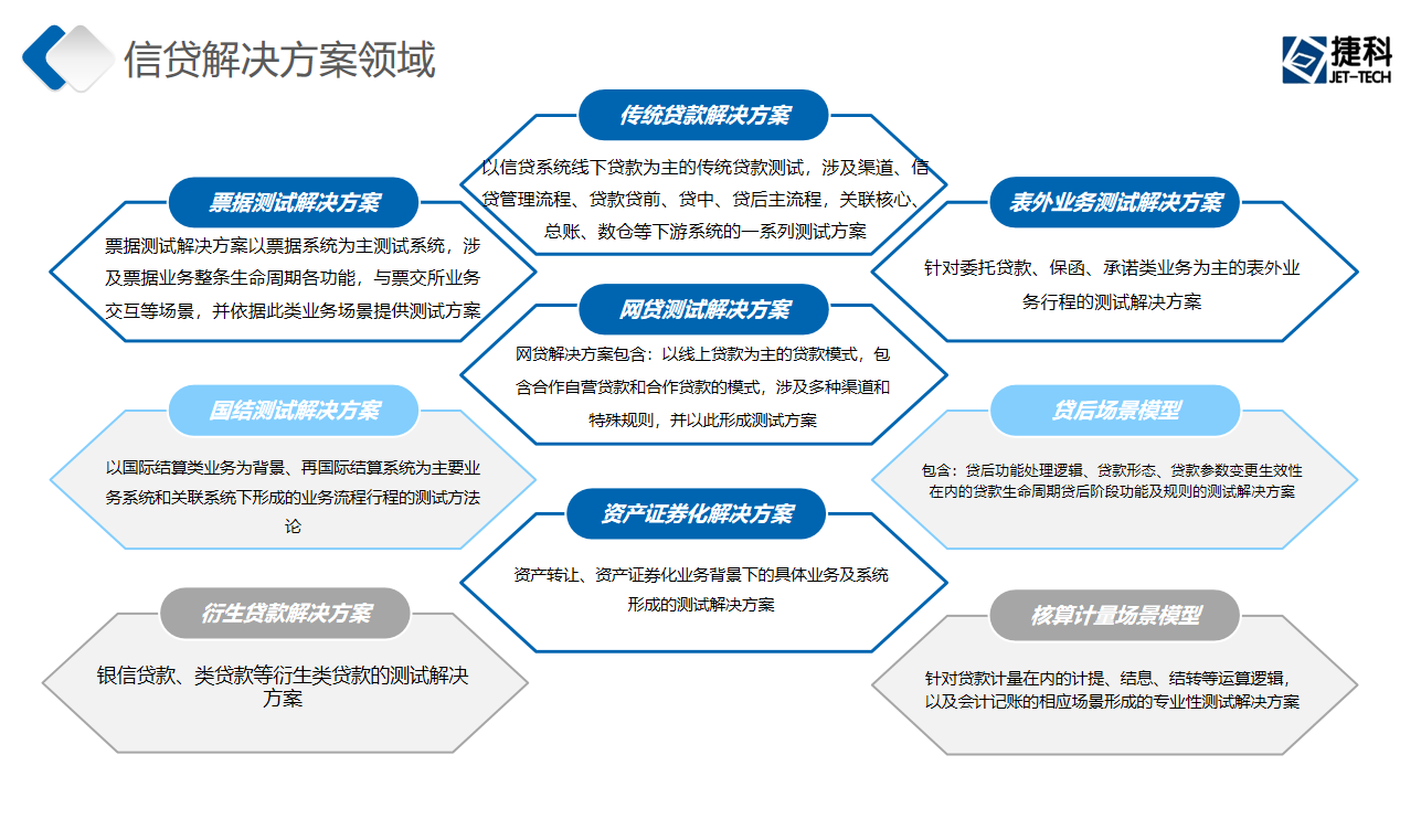 信貸解決方案部由公司10年+資產類業務系統測試經驗專家及測試分析人員組成,針對銀行資產類業務系統提供業務需求咨詢及培訓、測試設計咨詢、項目過程指導、整套測試生命周期的項目實施規劃、測試技術支持、業務咨詢支持和全過程項目指導,使整個項目實施更為專業。