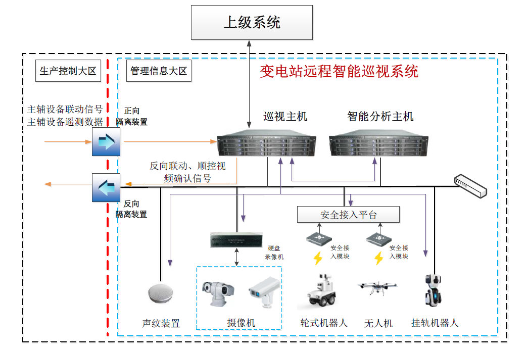 變電站遠程智能巡視主要通過通過集成所轄區域內視頻監控、周界防范、環境監測、門禁、出入口、消防等子系統,提供電力設備狀態在線監測(在線監視、在線測溫、在線聽診)、電力設備巡檢、紅外診斷、一鍵順控(變電站倒閘操作)視頻雙確認、變電站作業現場安全管控、其他AI智能識別(設備的不安全狀態、人的不安全行為、環境的不安全因素)等功能,為全行業電力運檢相關部門用戶提供輔助支撐,從而優化資源配置,降低人力成本,提高技術裝備和管理水平。