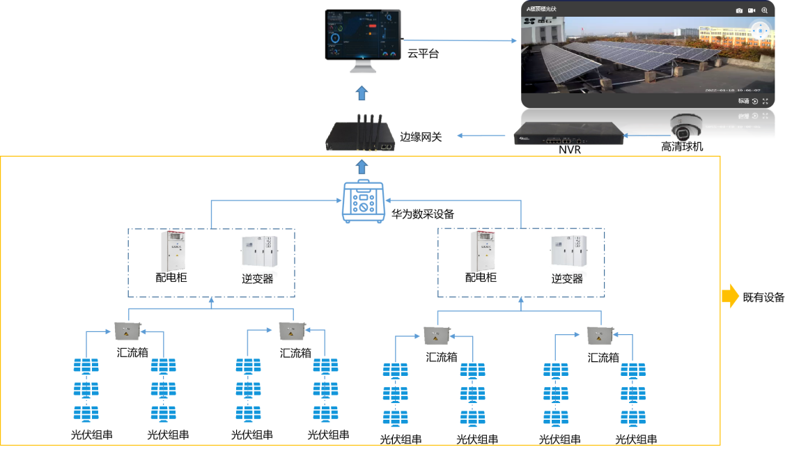 該項目利用車間屋頂、過道頂棚、停車場頂棚及辦公大樓屋頂進行光伏鋪設,,光伏鋪設覆蓋5個車間(含部分過道)、9個車棚以及辦公樓,裝機規模9.2MW;充電樁共22臺,其中20臺交流7kw,2臺直流120kw。●利用輔助系統實現變配電房遠程視頻監控、實時告警響應,提升變配電站運行的安全性和可靠性●集成企業既有系統,解決各子系統獨立運維的痛點,實現數字化、智能化的管理●綜合配電房環境、火災、安防、門禁、視...